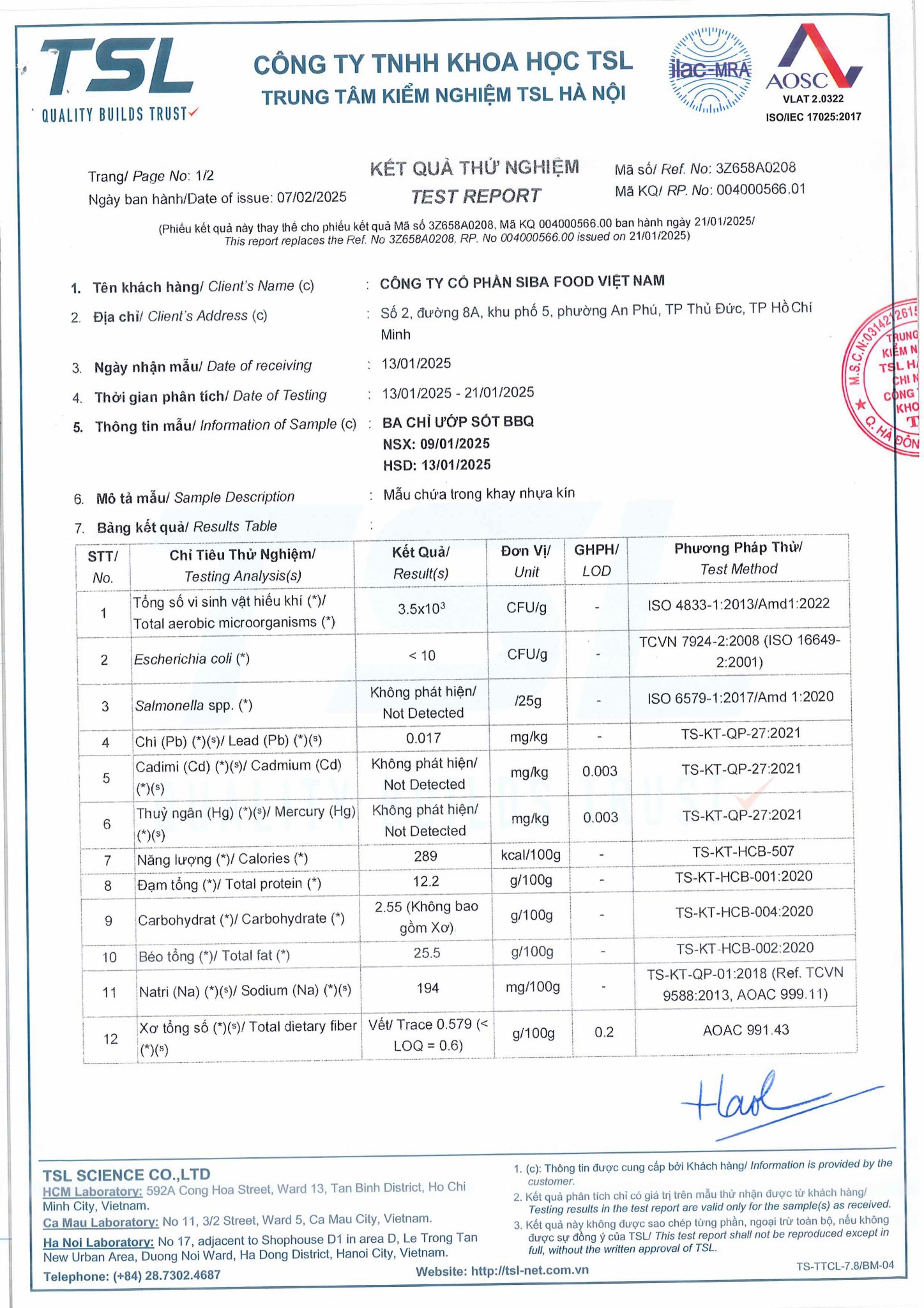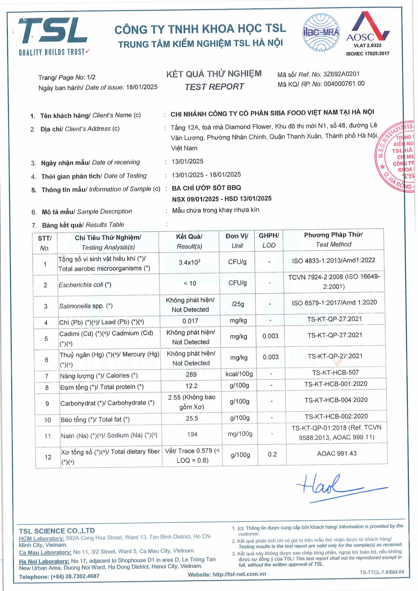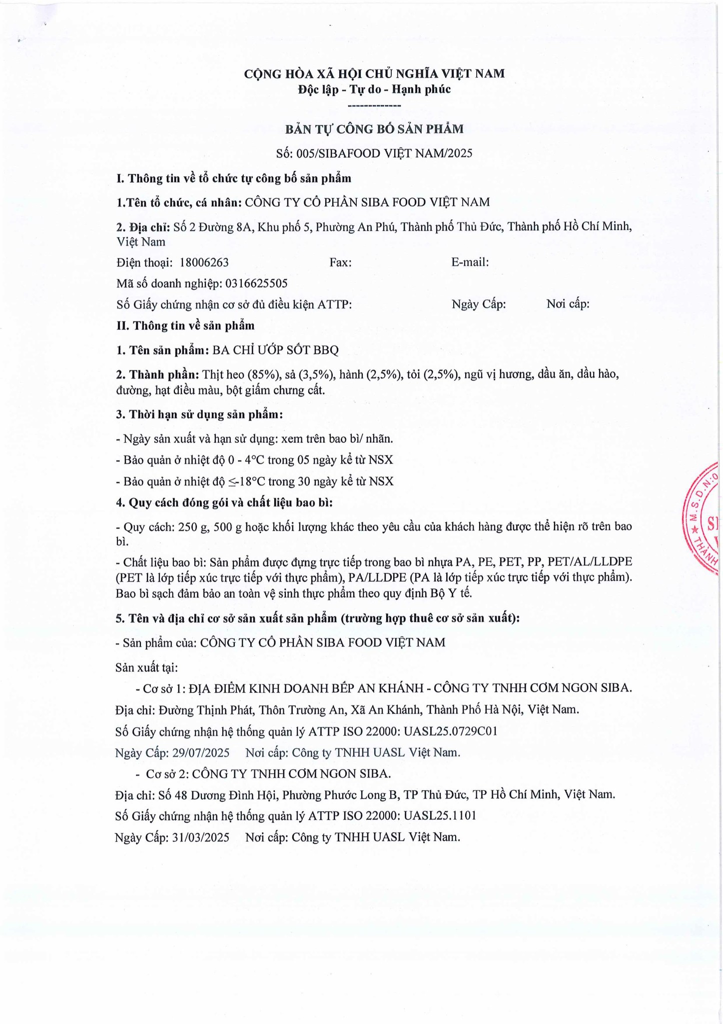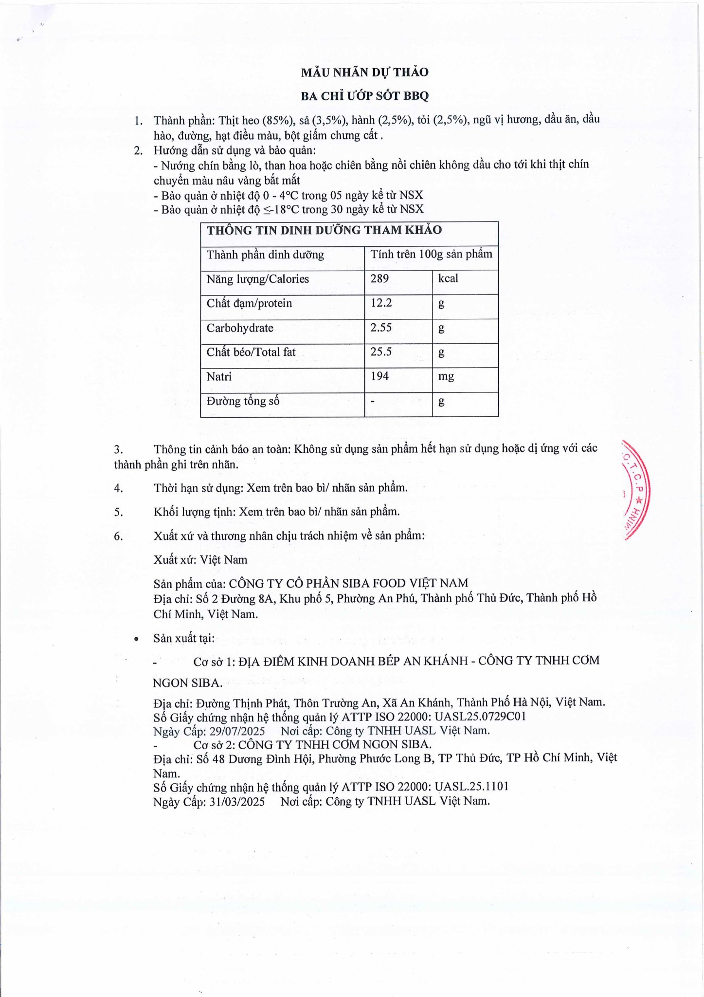 Thông tin HSCB Ba Chỉ Ướp Sốt BBQ