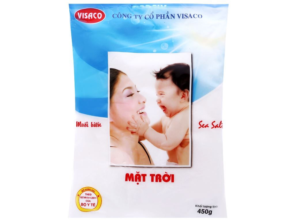 Muối Visalco là thương hiệu muối ăn thường được sử dụng trong bữa ăn hằng ngày của mọi gia đình. Muối biển Visalco Mặt trời gói 450g là loại muối đã được sấy khô, hạt trắng mịn. Muối có màu sắc và vị mặn đặc trưng, được dùng làm phụ gia trực tiếp trong các bếp ăn.
