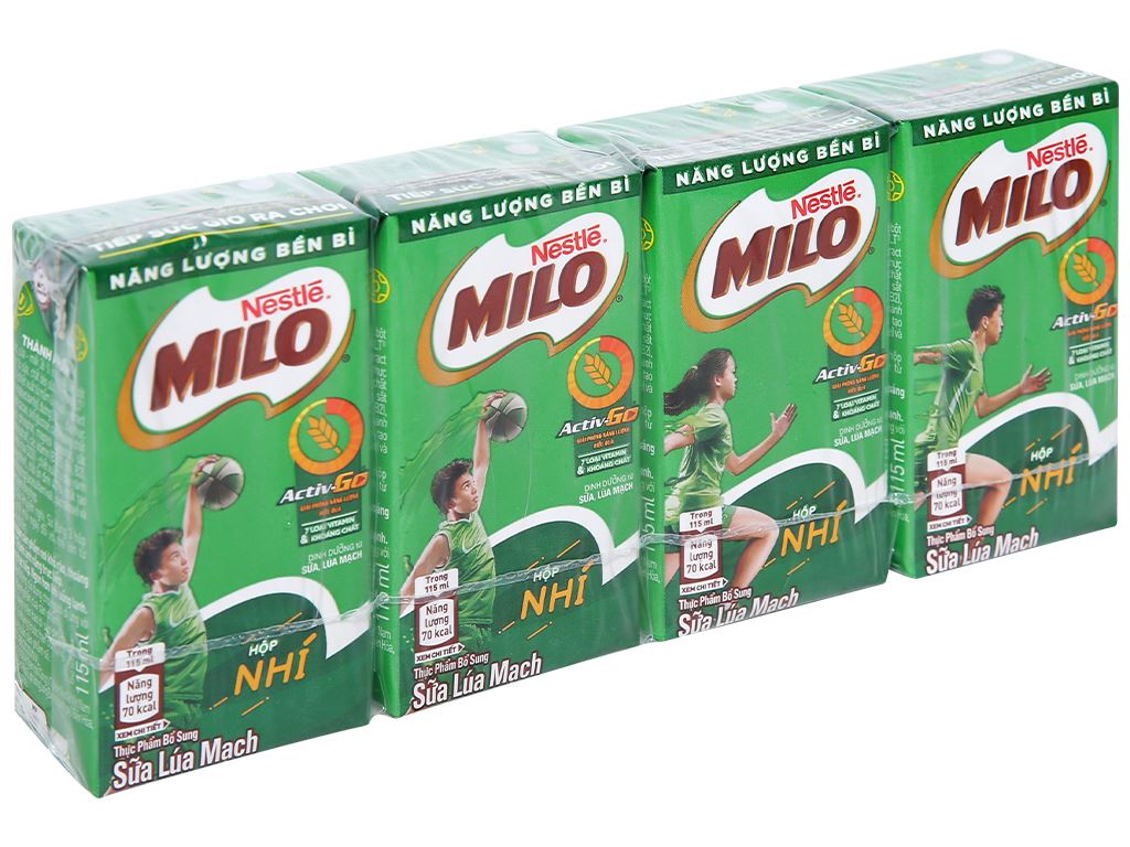 Sản phẩm sữa uống lúa mạch thơm ngon, giàu canxi và protein giúp cho cơ thể luôn phát triển toàn diện. Sữa lúa mạch Milo được các bé cực yêu thích. Lốc 4 hộp sữa lúa mạch Milo Active Go 115ml đóng lốc tiện dùng, đảm bảo dinh dưỡng và năng lượng cho bé hoạt động cả ngày
